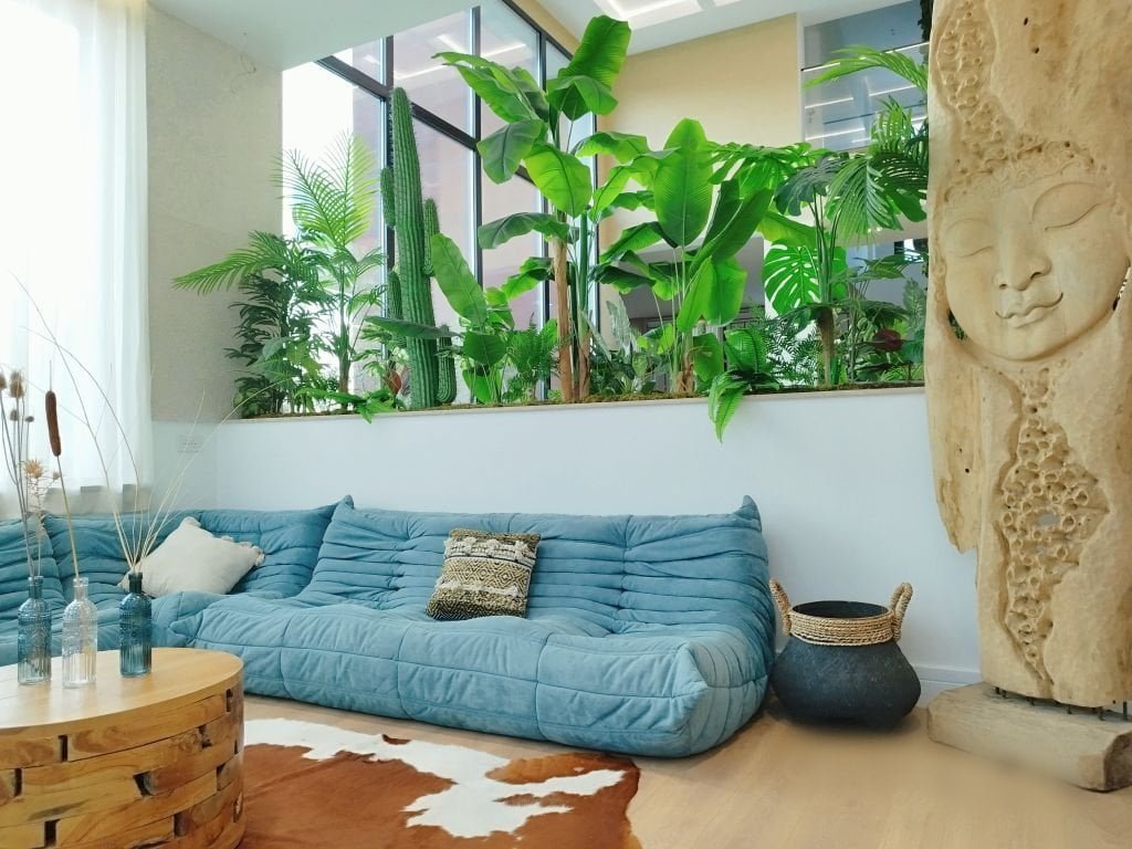 Nje zone relaksi prane pemeve me pamje te mrekullueshme nga lumi.